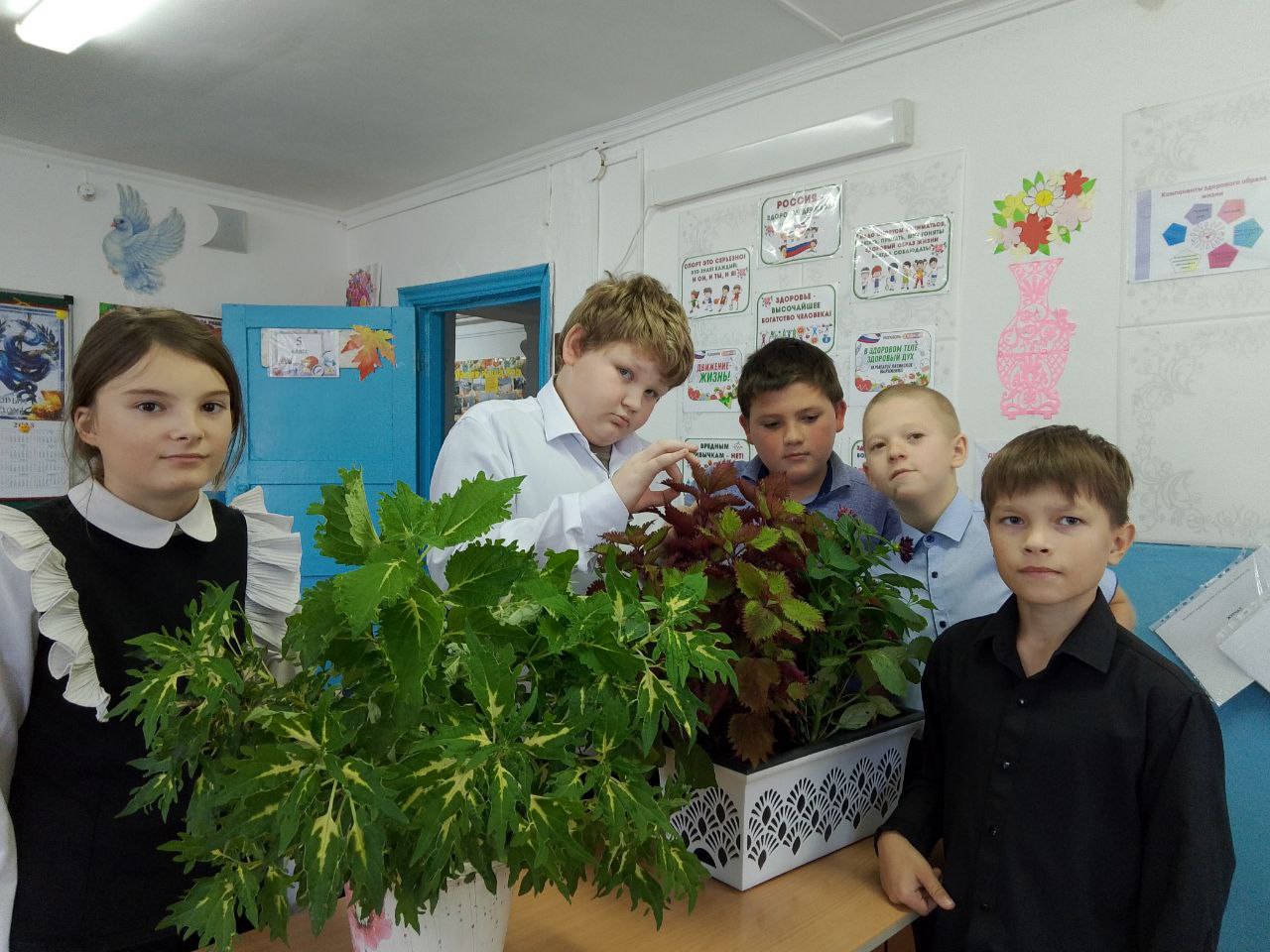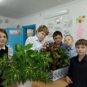 В рамках Недели естественных наук учитель биологии С.И.Булатова и обучающиеся 5 класса провели исследования двух разновидностей колеуса. Светлана Ивановна рассказала пятиклашкам: «Многие виды колеуса отличаются яркой декоративной окраской листьев и используются в комнатной культуре во всем мире. Листочки напоминают по форме листья крапивы двудомной. Именно из-за этого колеус получил народное название «крапивка». Колеусы предпочитают яркий солнечный свет. Под действием света окраска листьев становится максимально яркой». Ребята решили проверить, действительно ли на яркость окраса влияет солнечный свет, убрав один из колеусов в шкаф. Результаты своих исследований ребята подтвердят или опровергнут через неделю.