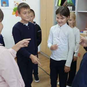 В рамках внеурочной деятельности «Орлята России» на занятии «В команде рождается лидер» провели групповую игру «В этом зале все друзья». Ребята расшифровали значение букв «ЧТП», что означало «Чередование творческих поручений», а далее выбрали для себя самые интересные поручения. В конце занятия учащиеся брали из шкатулки цитаты про лидера, зачитывали их и оставляли себе. Каждый ребенок получил эмоциональный настрой на дальнейшее участие в треке.
